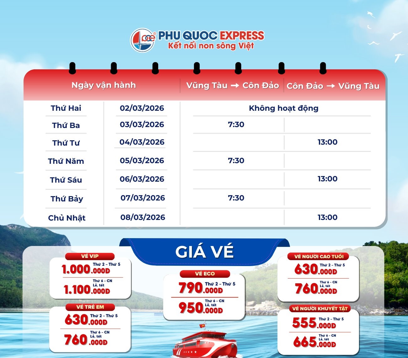 Trước tình hình giá xăng dầu trên thị trường có xu hướng tăng, nhiều doanh nghiệp vận tải hành khách điều chỉnh giá vé để cân đối chi phí khai thác. Tuy nhiên, tàu cao tốc Thăng Long vẫn tiếp tục giữ nguyên mức giá vé từ 790.000 đồng cho tuyến Vũng Tàu - Côn Đảo.