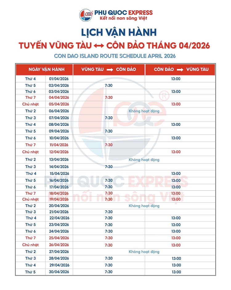 Lịch tàu Thăng Long Vũng Tàu - Côn Đảo tháng 4