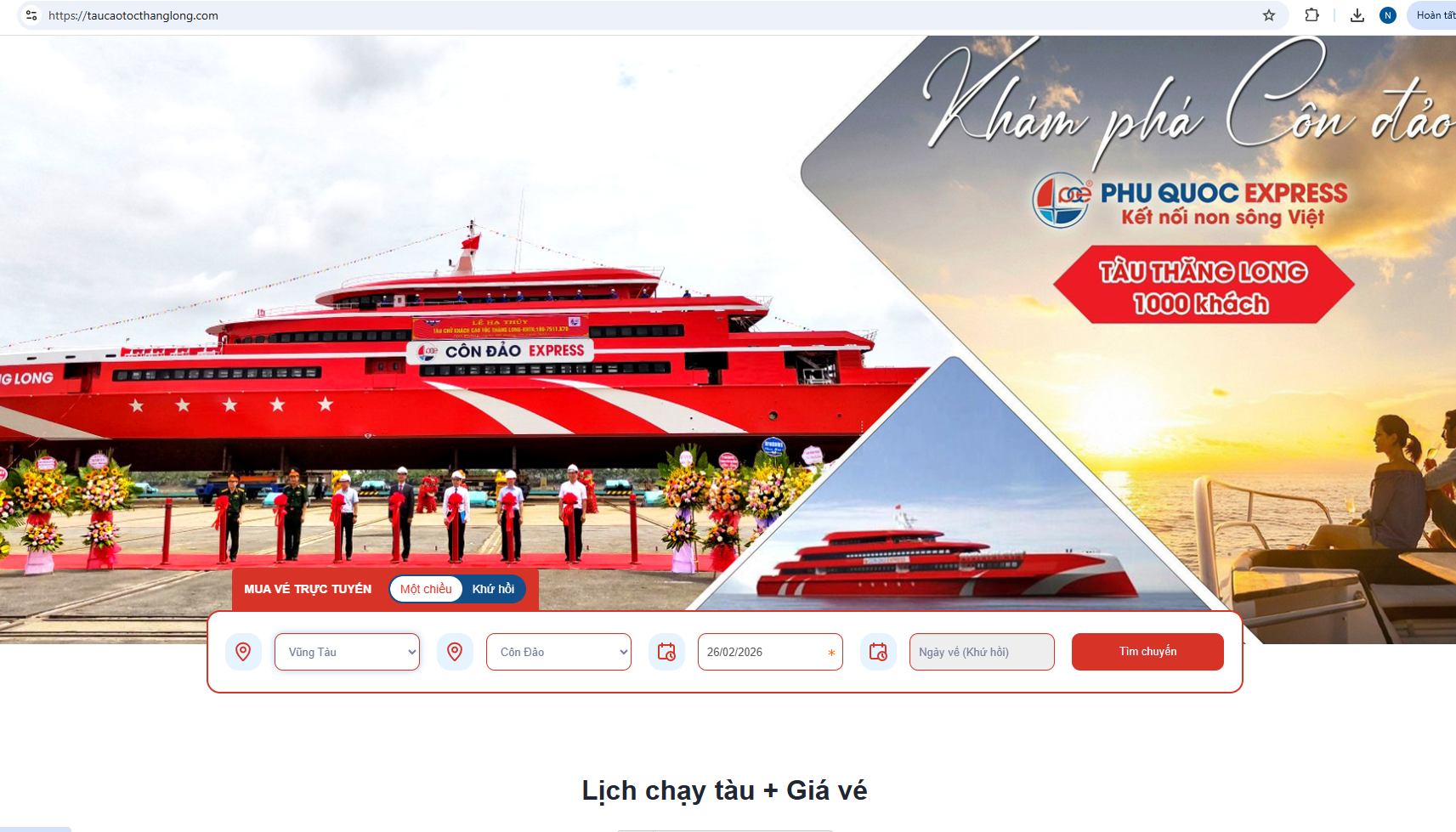 Tuyến Vũng Tàu - Côn Đảo bằng tàu cao tốc Thăng Long là lựa chọn lý tưởng cho hành khách muốn đi sáng - về chiều trong ngày, tiết kiệm thời gian nhưng vẫn trải nghiệm trọn vẹn hành trình ra đảo. Với lịch chạy ổn định, tàu hiện đại và mức giá cạnh tranh, Thăng Long đang được nhiều du khách ưu tiên khi đi Côn Đảo.